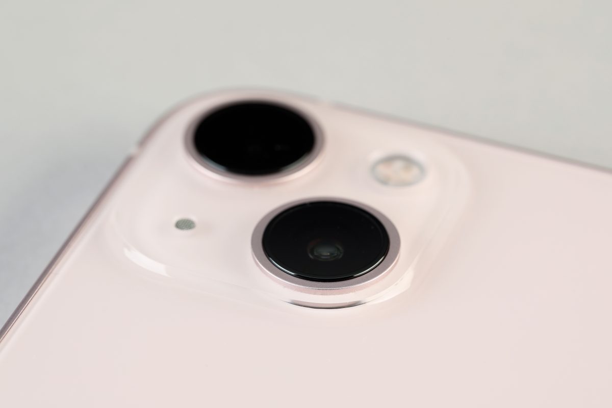 Phone 13 miniのレンズ部分。小さな本体にも大きなレンズがギチッと搭載されている。小さくてもカメラ性能はスタンダードの13と同じ。