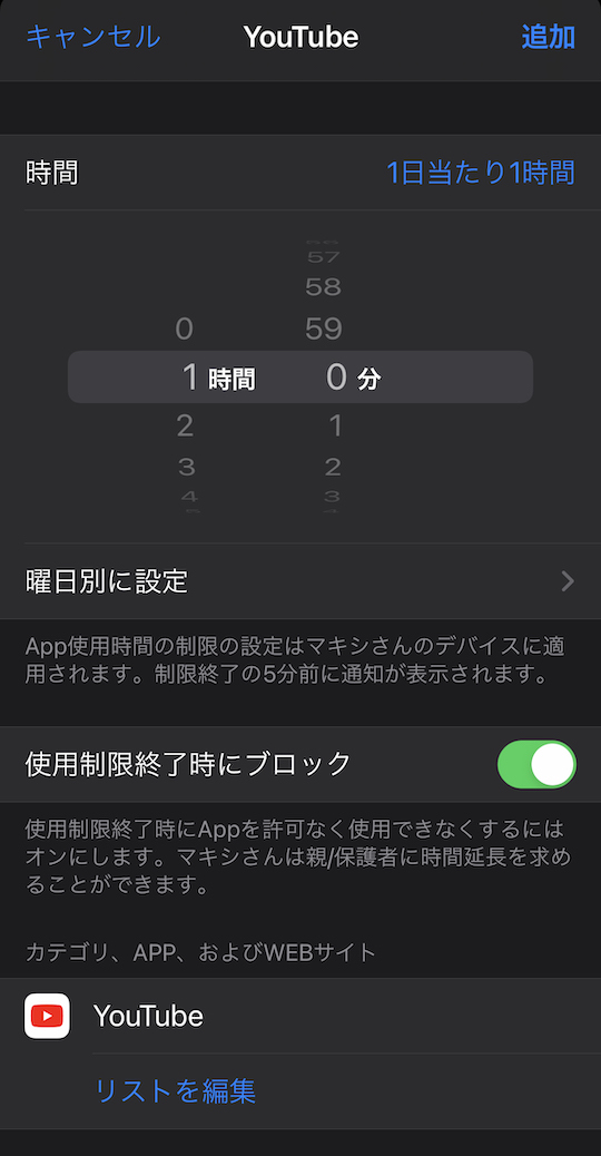 そうしておけば、どのアプリをアンロックするか、何時から何時まで触らせるか……などは全部コントロールできるのである。どのアプリを何時間見てるかもモニタリングできるし、YouTubeは1日45分まで……というような制限もかけられる。