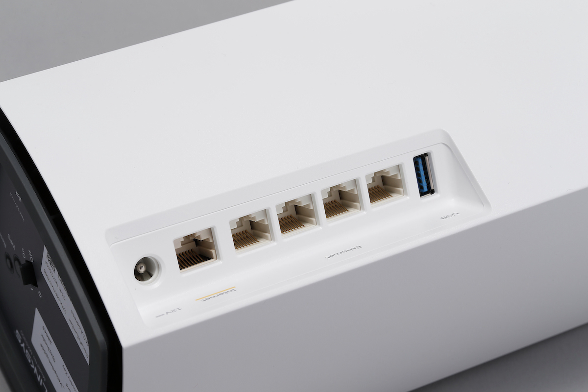 部屋のインテリアとも調和するシンプルデザインは大人のテイスト。複数台を組み合わせて、メッシュWi-Fiを組むこともできる。