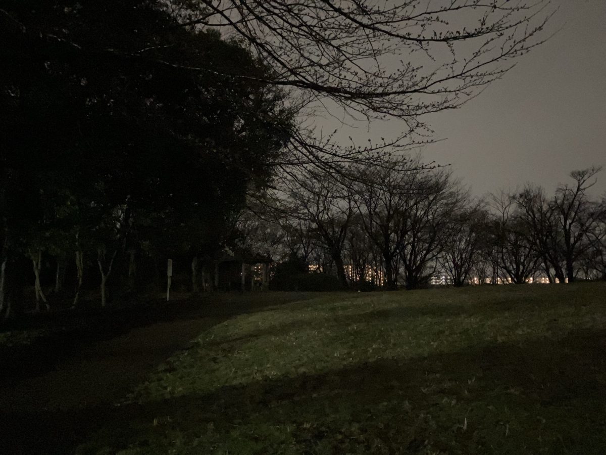 「では!」ということで、暗所性能を確認に、夜中の近所の公園に出掛けた。