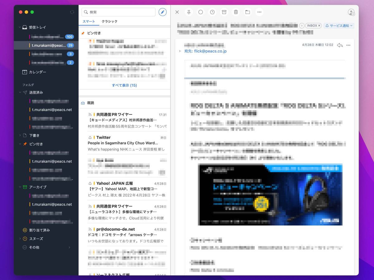 もちろん、似たような処理はGmailでだってできるのだが、ローカルのデバイスで管理できるのはやはり便利だし、iPadやiPhoneを使えば、快適なフリック動作でメールをアーカイブ送りにできる。