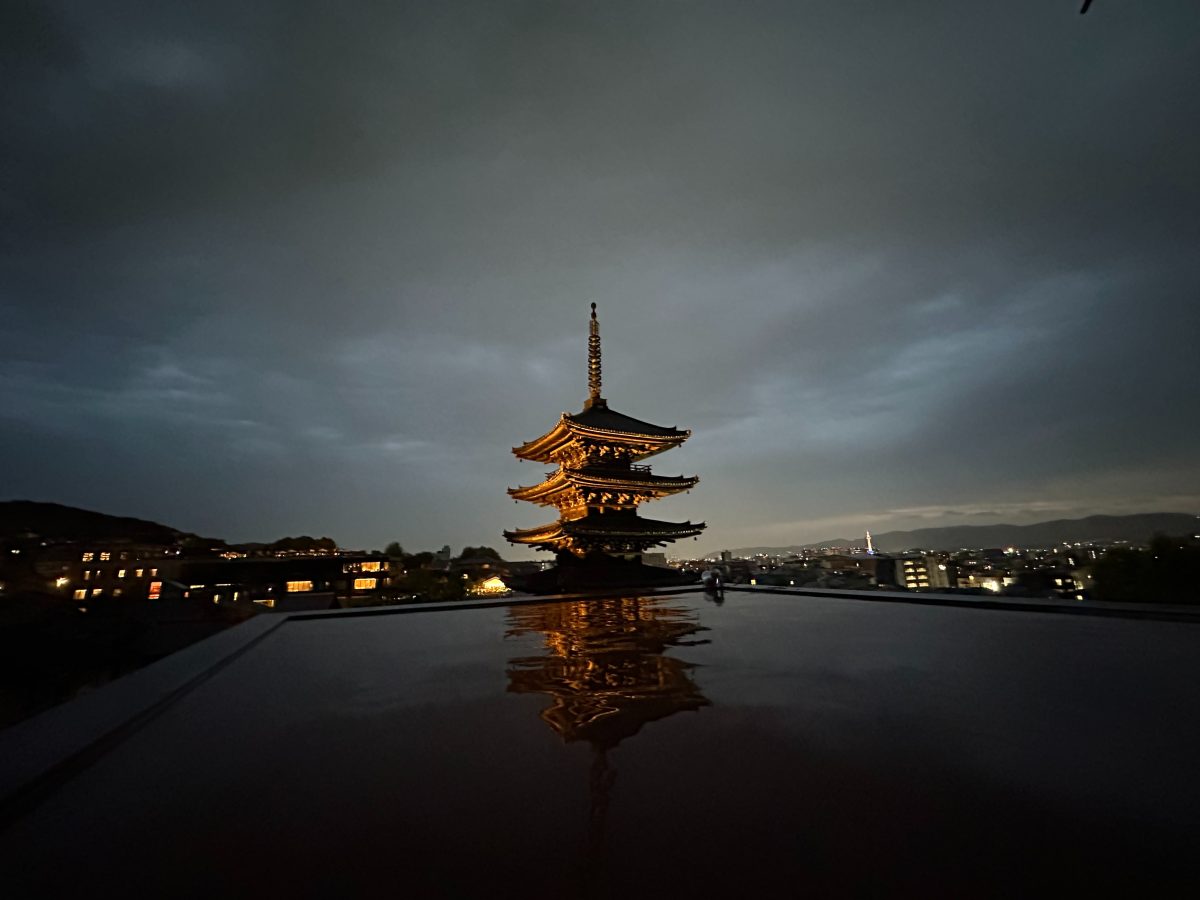 水たまりを利用したリフレクション撮影:超広角カメラ(0.5x)で撮影(THE SODOH HIGASHIYAMA KYOTO)