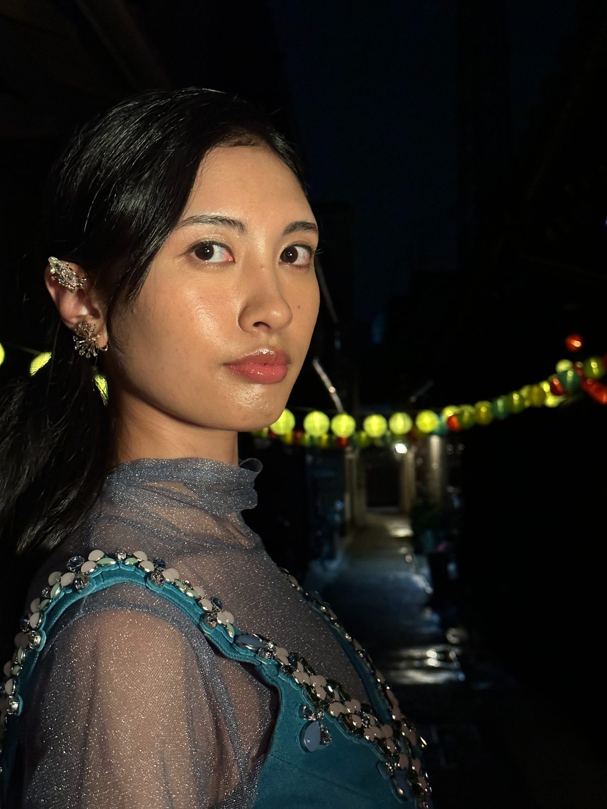 暗い場所でも肌や服の質感をとらえることができました。後ろの玉ボケもキラキラとうつくしく撮影できています。
