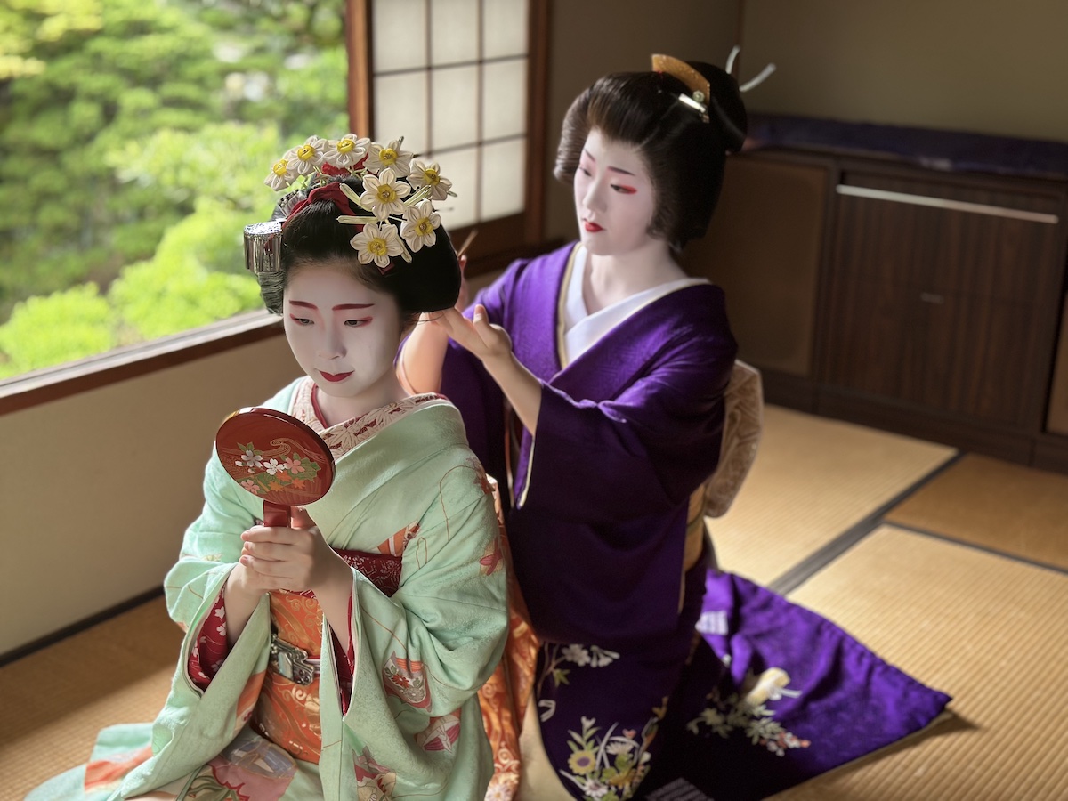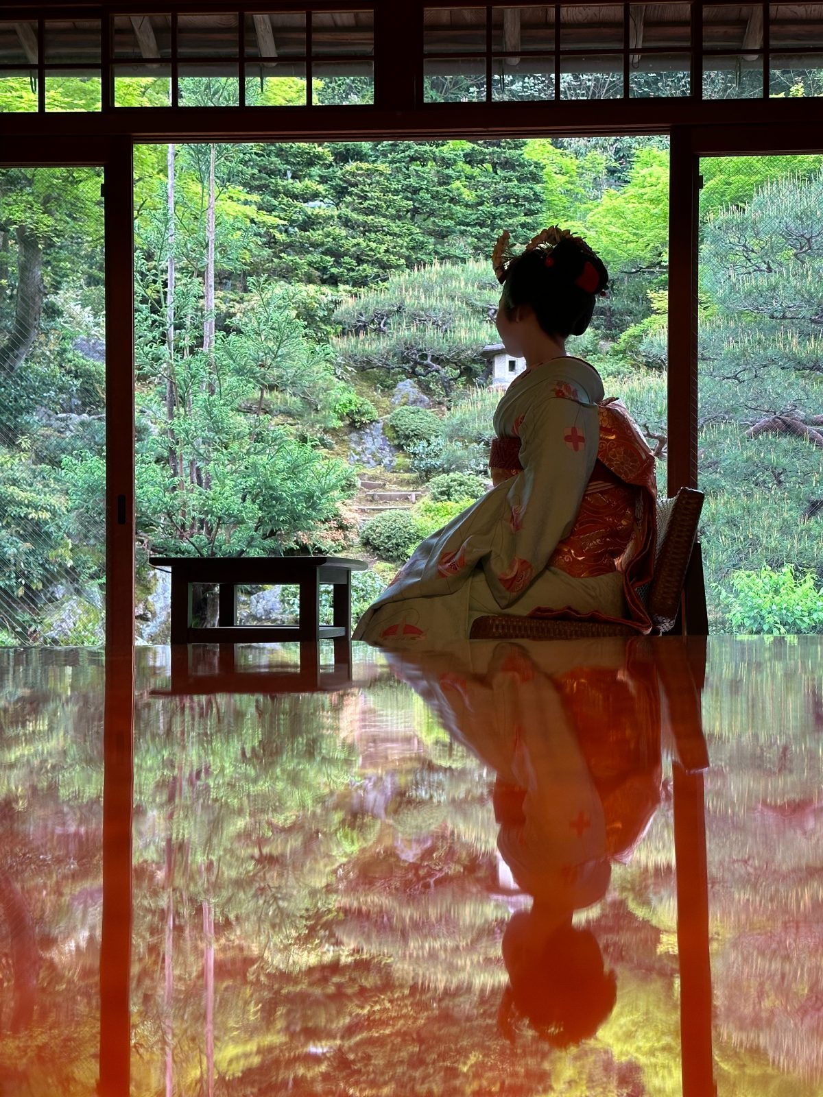 こちらは舞妓さん・芸妓さんを旧邸御室にお呼びして撮影した写真です。背景がぼけることで被写体を目立たせることができます。顔にあたる光の加減も意識すると◎