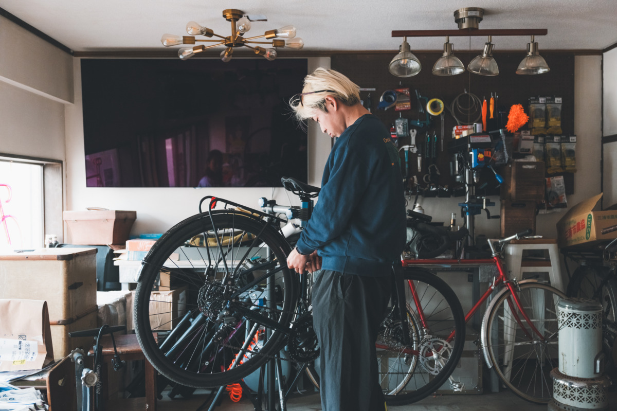 向かったのは三崎にあるヴェロスタシオン三浦。キッチン、自転車関連の雑誌や書籍が詰まった本棚、そして豊富な工具などもある、サイクリスト向けのゲストハウスだ。
