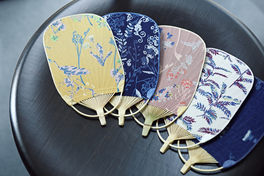 群言堂オリジナル生地を使用し、国産竹うちわの9割を生産する香川県丸亀の伝統工芸士の手作りによるうちわ。コンパクトサイズで携行性が高いのがポイント。