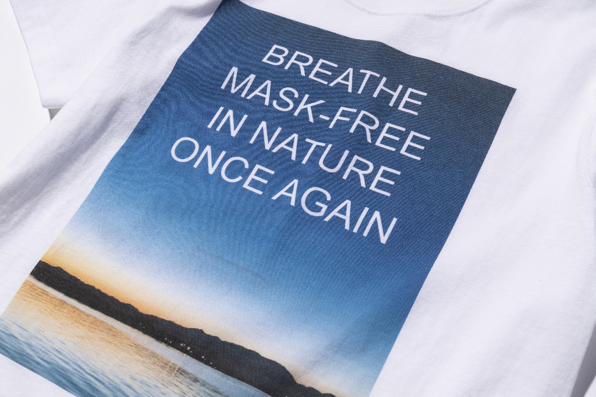釣りに行った際の日の出を写した写真を全面にプリント。「自然の中でマスクせずに深呼吸したいぜ!」というコピーが、まさに今、世界を取り巻く環境下での、趣味人たちの思いそのもの。6,800円(税込)