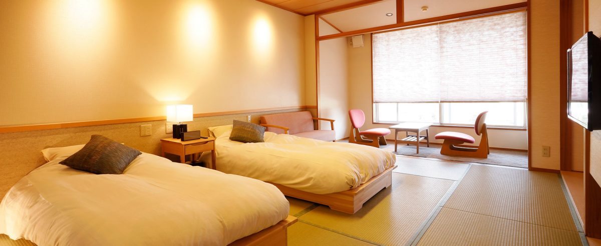 自家温泉付きの客室や露天風呂付客室、ローベッド仕様のモダン和室、バリアフリー対応の部屋など、6つの客室を用意。「まるで家路に帰ったように、ホッとする空間」と謳っているとおり、どの部屋も広々とした心地よい空間で旅人を迎えてくれる。