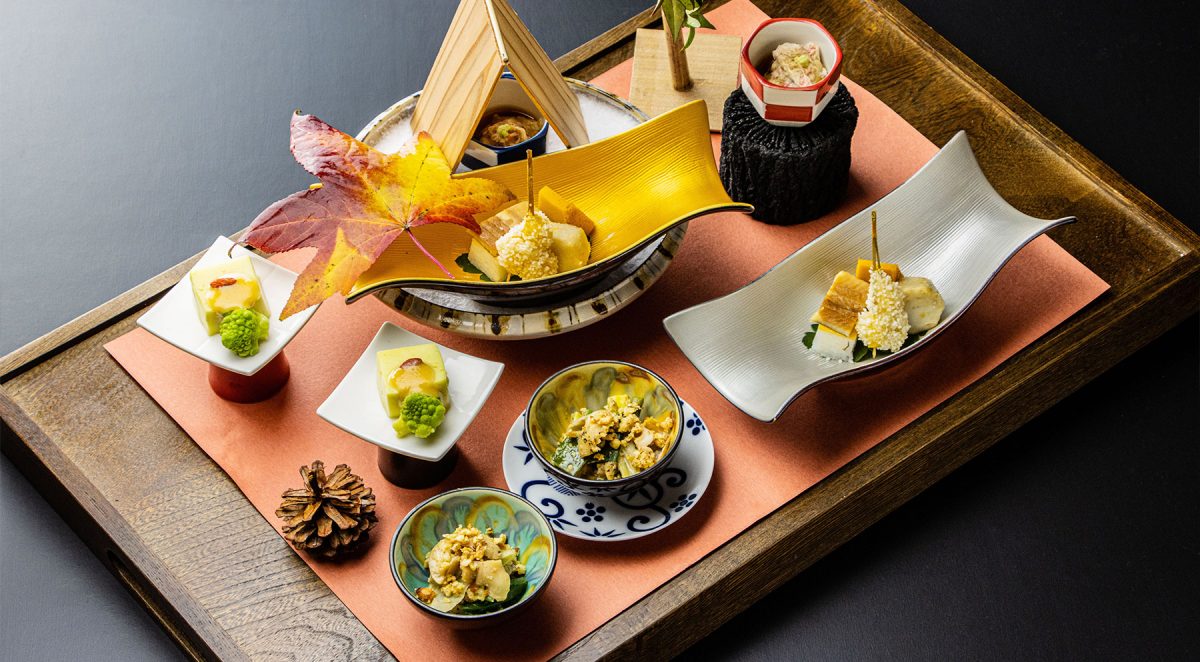 雄大な自然に恵まれた甲州市は、葡萄や桃といった果物の名産地としても知られ、山里ならではの食材がたくさん。「茶料理 懐石まる喜」では、日本料理の原点とも言われる茶料理(=茶事でもてなす料理)をベースにした、“山のごちそう”を謳う懐石を堪能できる。