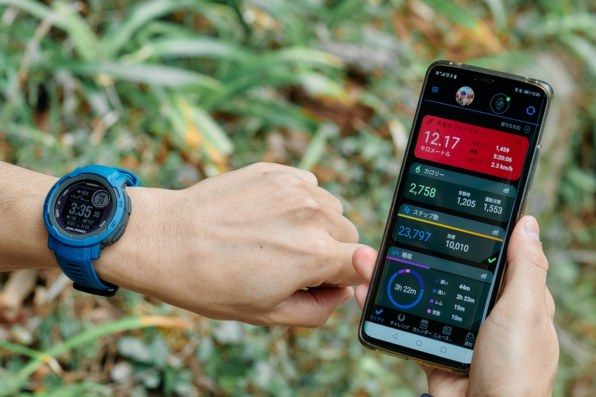 たかくらさんが活用している光学式心拍計は、腕に装着している間、ずっと心拍数を計測する。そしてそのデータを記録。さらに「Instinct 2 Dual Power」と連携するスマートフォンアプリ「Garmin Connect Mobile」で、記録したデータを管理、分析、共有が可能だ。