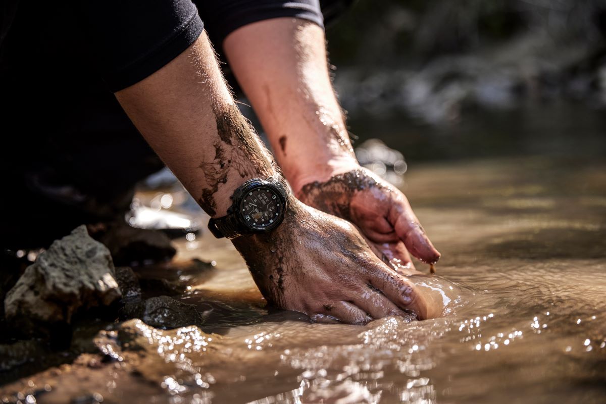 独自のパネル層とIC効率化により、驚きのロングバッテリーを実現した。新たにアナログ時計部分のみを稼動させるアナログモードが採用された。ソーラーバッテリーを搭載するDual Powerモデルの場合、アナログモードは無制限の使用が可能だ。スマートウォッチモードで約28日間にプラスしてソーラー充電で42日間、最も電池を消費するGPS+光学心拍計モードにしても約25時間にソーラー充電でプラス6時間となる。これにより電池残量を気にすることなくアクティブな行動ができる。また使用状況に合わせてパワーマネージャーでセンサーや機能の設定を変えることで、バッテリー寿命を最大限に伸ばすことが可能だ。