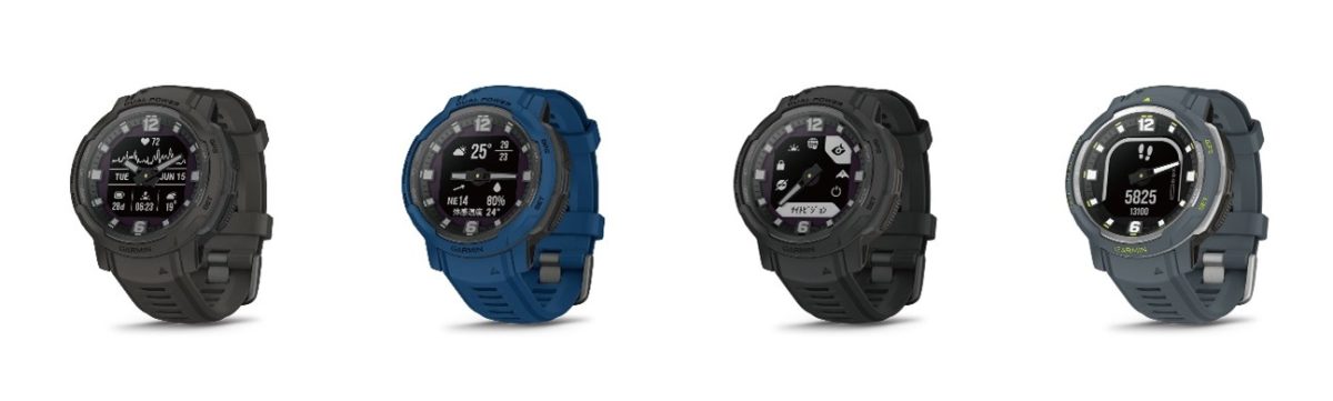 ラインナップは全4種類。ソーラーバッテリーを搭載する「Instinct Crossover Dual Power」が2種類のカラーを用意。さらに暗視ゴーグルとの互換性やステルスモードなどのミリタリー機能を備えた「Instinct Crossover Dual Power Tactical Edition」とオンラインショップ限定販売のノンソーラーモデル「Instinct Crossover」が揃う。
