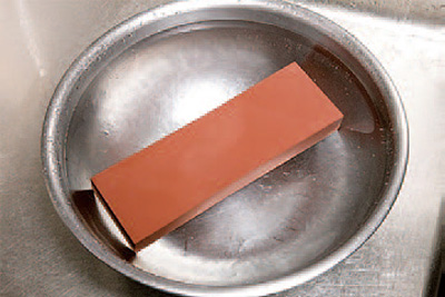 3 . 砥石はあらかじめたっぷりの水に浸ける