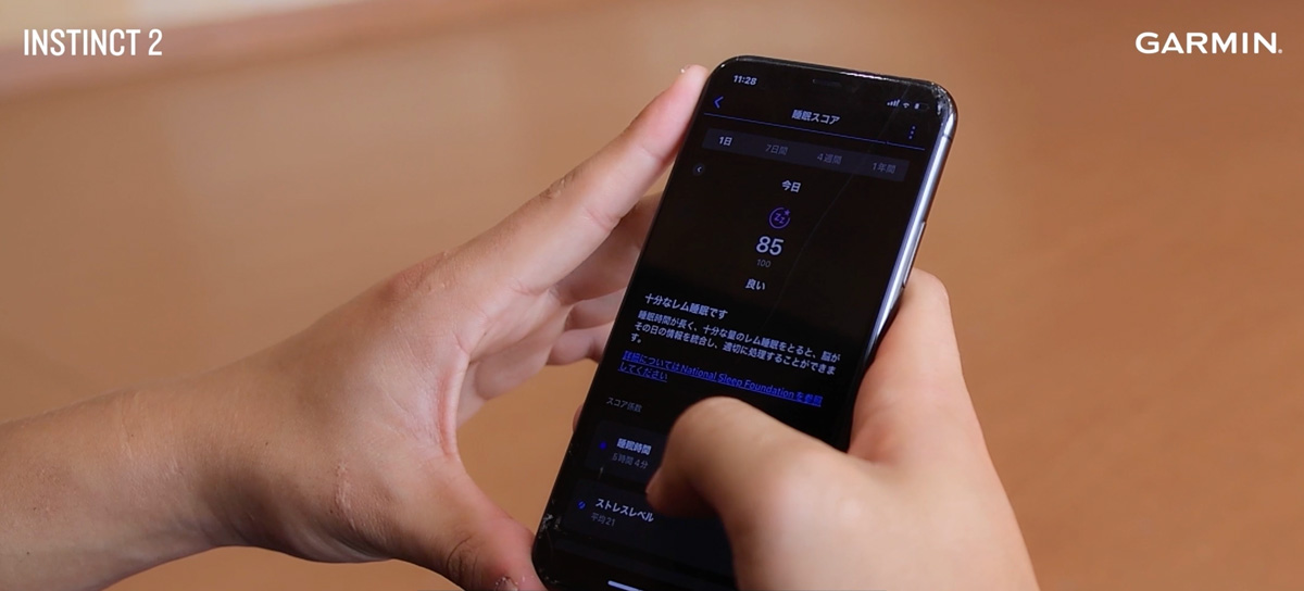 2021年に大腿骨開放骨折の大怪我を経験した彼にとって、体調や健康管理は欠かせないもの。『Garmin Instinct 2』に搭載されている「睡眠スコア」も活用し、日々自分の身体と向き合っている。