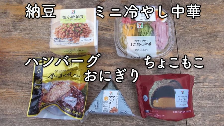 今回用意したコンビニ商品はこの5つ。ハンバーグはわかりますが、おにぎりにシュークリームまで……。味がまったく想像できません。