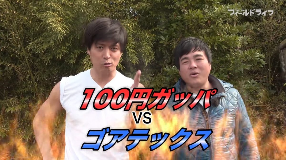「レインコートなんて、100均の雨カッパで十分じゃん」とゴアテックスの性能を信じていない原田。それなら、どっちが水に強いか勝負しよう!ということに。