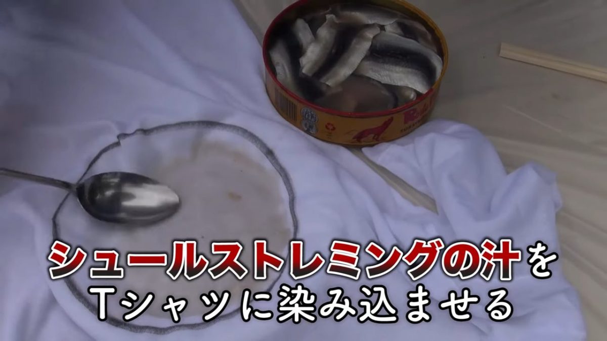 そんな激臭シュールストレミングですが、使用上の注意の文面に「衣服に付着したら匂いはとれません」と記載されています。今回の実験では、セバスチャンがシュールストレミング激臭と戦いながら、ニオイ取りに挑戦します。