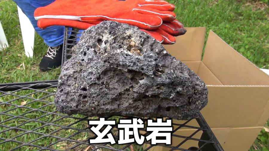 マグマの素となっている玄武岩を取り出したセバスチャン。玄武岩の融点は1000℃なので、これを熱していけばいいのですが、それはさすがに無理なので……。