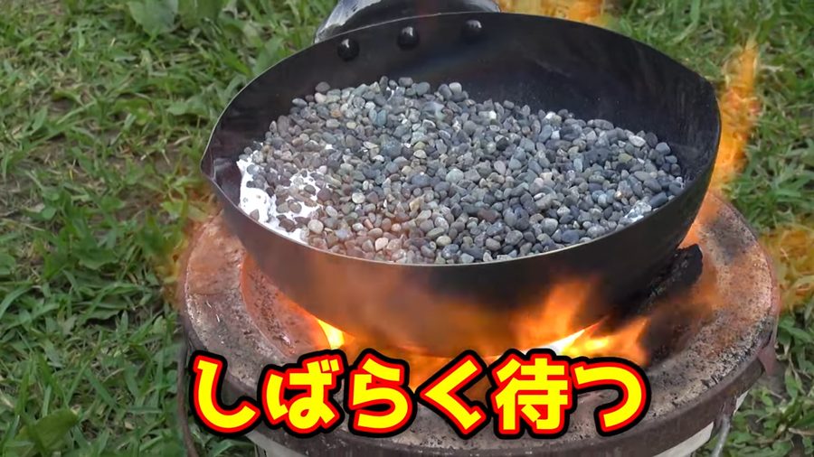 鑑賞魚用の砂利を用意しました! 砂利だけでは作れないので、あるものを加えて炭火で加熱していきましょう。