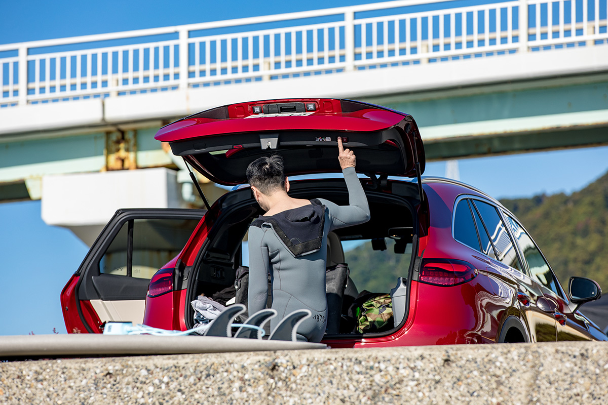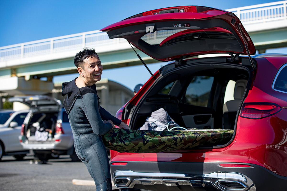 「まだまだラゲッジに余裕がある。ライブツアーの移動でも重宝するかも。楽器やアンプなど、サーフィンより道具が多いんですよ。いつもはテトリスみたいに計算しながら搭載してるけど、GLCなら余裕がありますね。アクティブに動きたい自分にはすごく合ってる」
