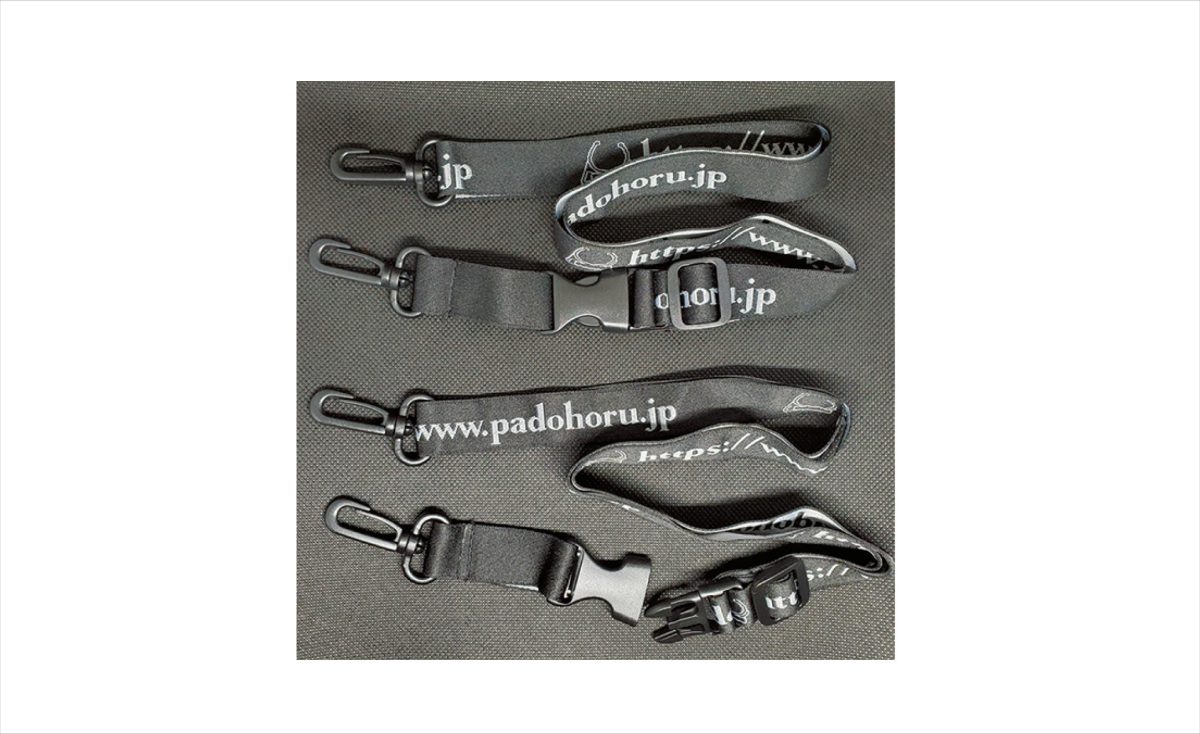 長さ調節(約450 ~ 600㎜)可能なオリジナルストラップ。バックル(ブレイカブル)式のため途中で脱着可能