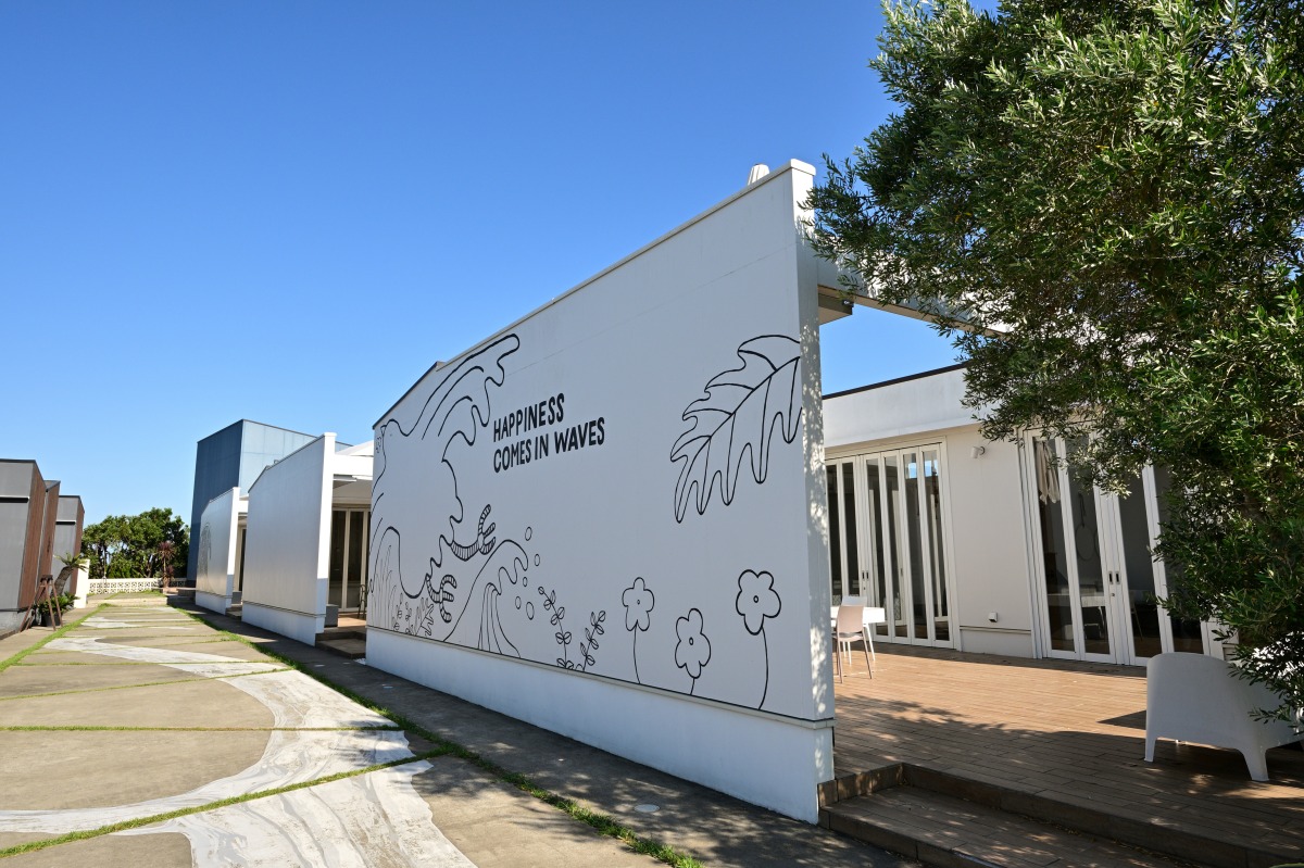 ー目的地THE CHIKURA UMI BASE CAMPはサーファーならずとも楽しめる施設。いろいろなタイプのカッコイイ部屋が用意される。オーシャンビューはもちろん、愛犬と一緒に泊まれる部屋もあれば、海を見ながらサウナを楽しめる部屋もある。そしてどの部屋もインテリアはモダン。都内のちょっとした外資系オシャレホテル顔負けのつくりとなる。