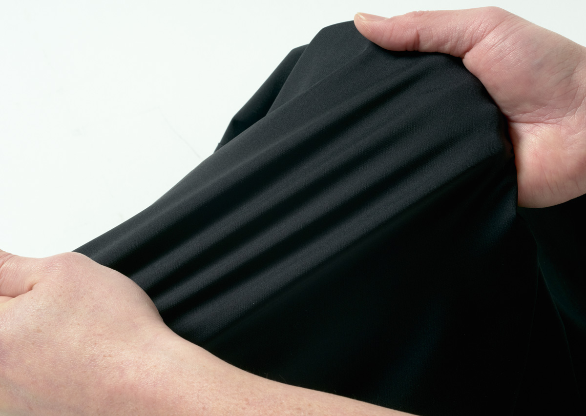 ▲防風性をもつ中厚手の生地には適度なストレッチ性が備わる。