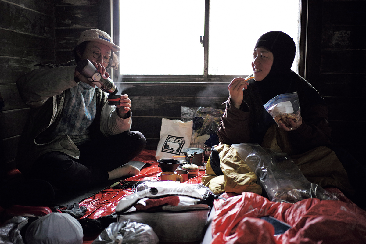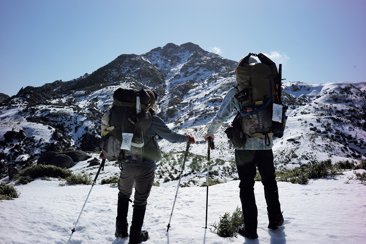 なぜなら登山を始めたころ、ウルトラライト志向の機運が高まっていたことと、僕自身もパワーがあるほうではなくギアは軽くすべきという考えが根底にあったから。それに普段はあまりハードではない九州の山を登ることが多いので、フレームレスで十分なんです。とはいえ、冬の屋久島となると例外。一年をとおして雨が多く、雪に変わるほど寒くもなる。予備の防寒着や、停滞を考えると食糧も多めに持つ必要がありました。今回はヤクスギランドから入り、宮之浦岳を経由して白谷雲水峡へ向かう縦走路。長丁場になるため、少しでも体の負担を減らしたかった。 そこで、同じように痛い経験をしたパートナーが愛用し、「背負っても痛くない、疲れない」と絶賛していたブラマンキのブロン60を購入。フレームレスと大型フレーム入りの中間を標榜するブロン60は、フレームレスで軽量化しつつ、パックの上部を留める細引きとショルダーハーネスを連結し、荷重が引き上げられる独自の分散構造を採用しています。