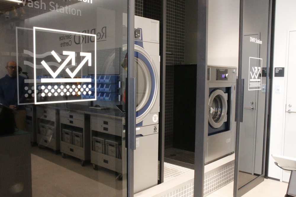 こちらが「ReBIRDサービスセンター」ならではの特徴である、洗濯機と乾燥機。フィールドで使ったウエアを、洗って持って帰ることもできるというのは、なんともありがたい。
