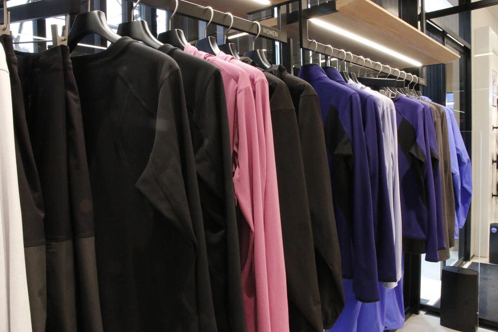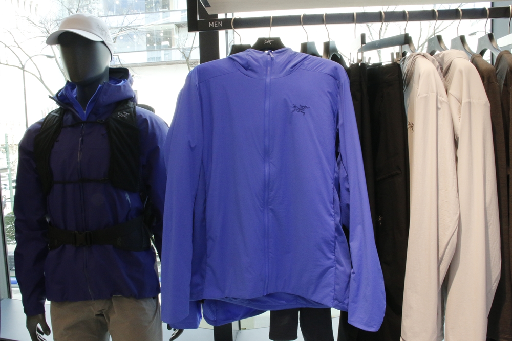 「製品の色は、アークテリクスのこだわりのひとつです。大通りに面したファサードには光をさえぎらないガラスを採用し、店内に自然光がふんだんに入るような設計としたのは、フィールドで着用した際の色をストアで体感していただきたかったからです」とブランドヘッドの高木さんは言う。