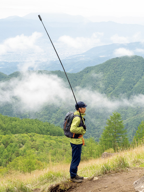別売りオプションの「超長い自撮り棒」(¥8,000)は、その名のとおり長さ3m。これを使うと、まるで上空からドローンで撮ったような映像が撮影できる。山頂稜線などで使うと効果抜群で、空間に浮かんだような高度感ある映像が簡単に撮れてしまう。これまでの一般的なカメラではとうてい得られない撮影体験だ。