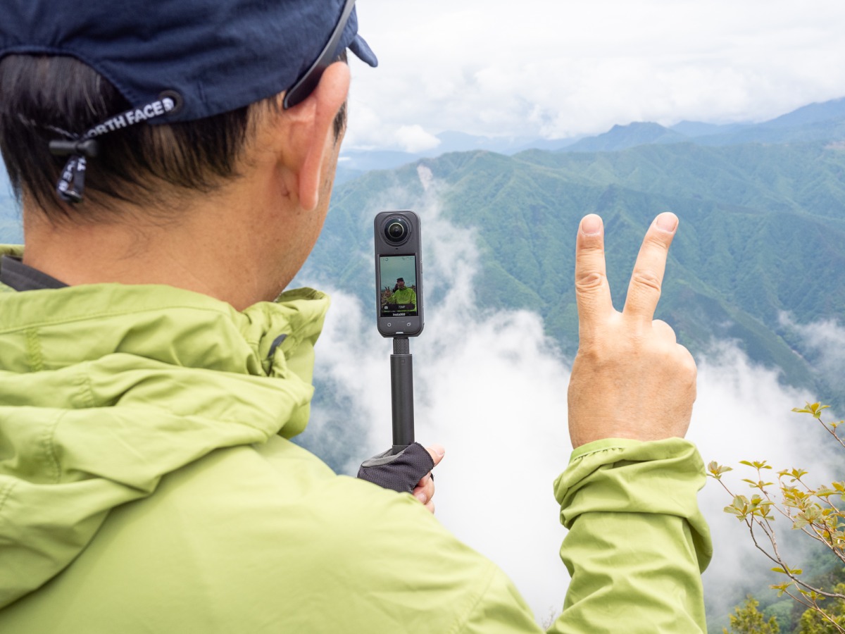 360度の展望が広がる山頂ではぜひパノラマ撮影をしておきたい。とはいっても、Insta360 X5なら、カメラを差し出してシャッターを切るだけ。あとはお気に入りのアングルや画角で切り出せばいい。もう山頂での撮影をだれかに頼まなくてもいい!