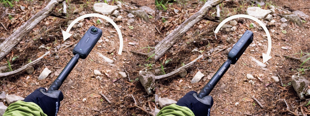 Insta360 X5は、カメラに向かってピースサインをすると静止画撮影、手をパーの形にすると動画撮影が始まる。また、カメラを2回素早くひねると撮影開始する機能もある。離れた場所から操作したいときや、雨が降っていたり手袋をしていてボタン操作がやりにくいときなどに、これは便利な機能だ。