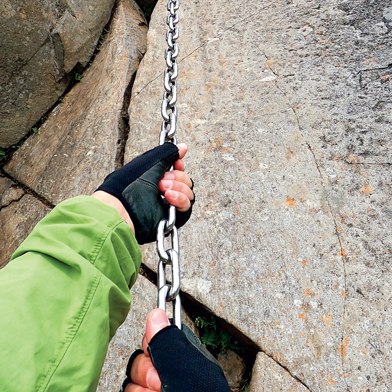 別売りアクセサリーの「三人称視点バックパックマウント」(¥9,190)を使うと、両手が離せない場所でも撮影が可能になる。クサリ場を登っている自分の姿など、他人に撮ってもらわないかぎり見ることはできないが、Insta360 X5なら簡単に臨場感たっぷりの映像を残すことができる。