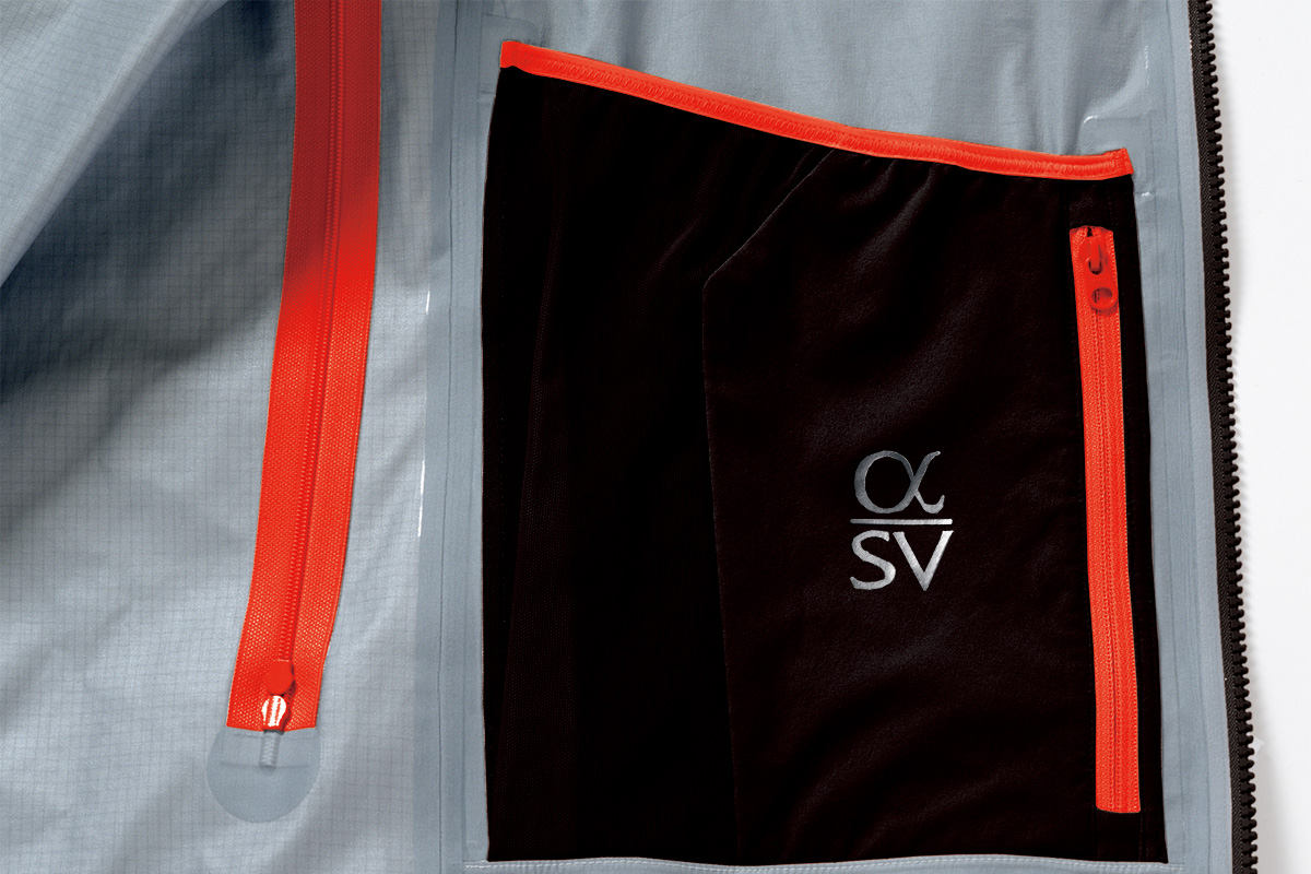 素材はPFASフリーのePEゴアテックスプロながら、表地に引き裂き強度がデニール数の倍に匹敵するハドロンLCPグリップを採用することにより、薄手で軽量ながら、非常にタフで、高い機能を実現したアルパインジャケットに進化。同サイズのアルファSVジャケットより140gも軽くなっている。