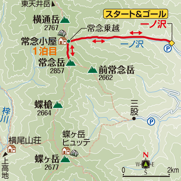 2025年6月現在、路肩崩落に伴いマイカーでの通行ができないので注意。公共交通機関の場合、JR大糸線豊科駅または穂高駅からタクシーで一ノ沢の林道崩落箇所まで約30分。そこから登山口まで徒歩約40分。