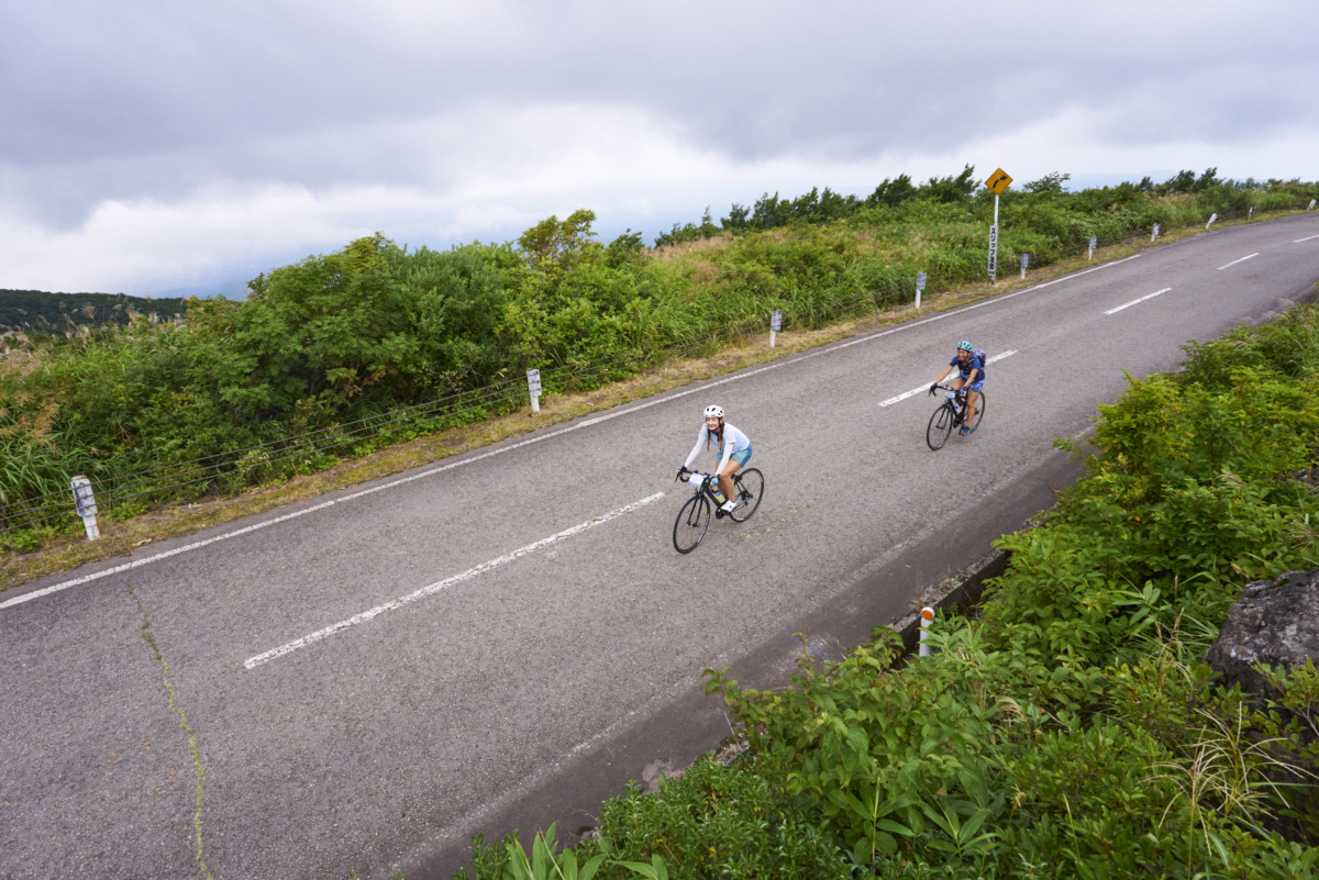 パートナーのアリサはふだんからロードバイクのレースにも出るほどのロードバイク好きで坂道でも余裕の安定走行。私はというとアドベンチャーレースでマウンテンバイクに乗るぐらいなのでロードバイクにも坂道にも不慣れ。アリサに付いていくだけでも必死だ。ギリギリ笑顔を保っているが、すでにけっこうバテている(笑)。