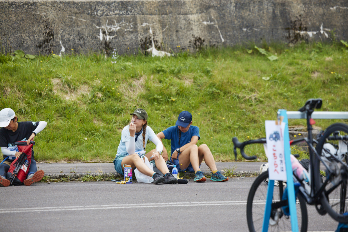 この大会はバイクのセクションもパドルと同様、自転車であればロードでもマウンテンでもグラベルでも、なんでもOK。しかもE-バイクもアリなのだ。自転車が得意な人やE-バイクの人に抜かされたりするが、声をかけてくれたり、声援を送ってくれたり、みなさんとってもやさしい。声をかけてくれると、こちらも声援を送り返したくなるし、おたがい笑顔になり、元気になれる。バイクセクションはもっともつらいけど、つらいからこそ参加者とコミュニケーションを取りながらがんばろうと思えるパートかもしれない。