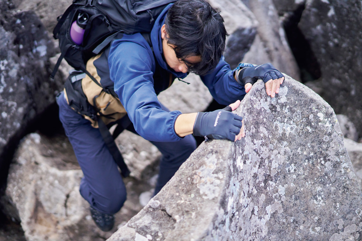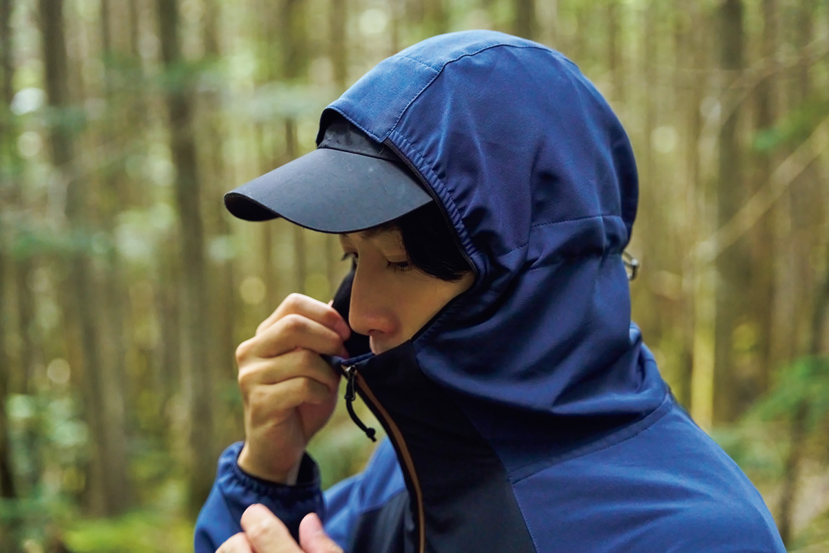 空気が冷たくなる秋から冬の山で重宝するのがソフトシェル。風を抑えながら適度に通気する生地は蒸れにくく、ストレッチが効いて動きやすい。行動中の多くの時間を一着でカバーできる優れものだ。