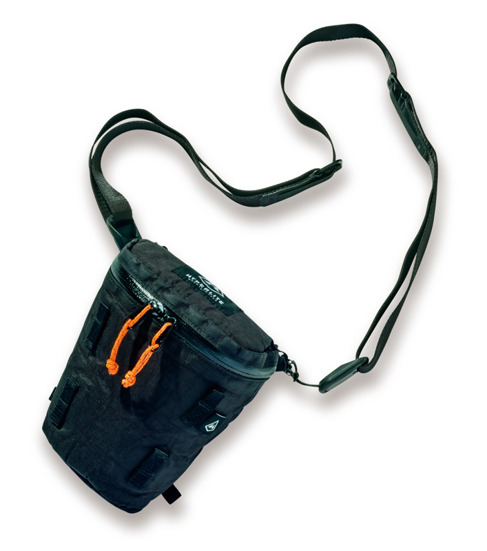 また使い勝手のよさも魅力です。8カ所にループが設けられており、コードを通してタオルを掛けたり、ストラップを取り付けて首や肩からさげたりと自由度が高い。使わないときは薄く潰して収納でき、テント場での散策時にはサコッシュ代わりに小物を入れることもできます。必要な機能のみ備わり、汎用性にも優れる。まさに登山ギアとしての本懐を遂げる、僕の理想のカメラバッグです。ただそのぶん値段は張りますが……、大切なカメラを守る投資と考えれば、納得できる範囲だと思います。