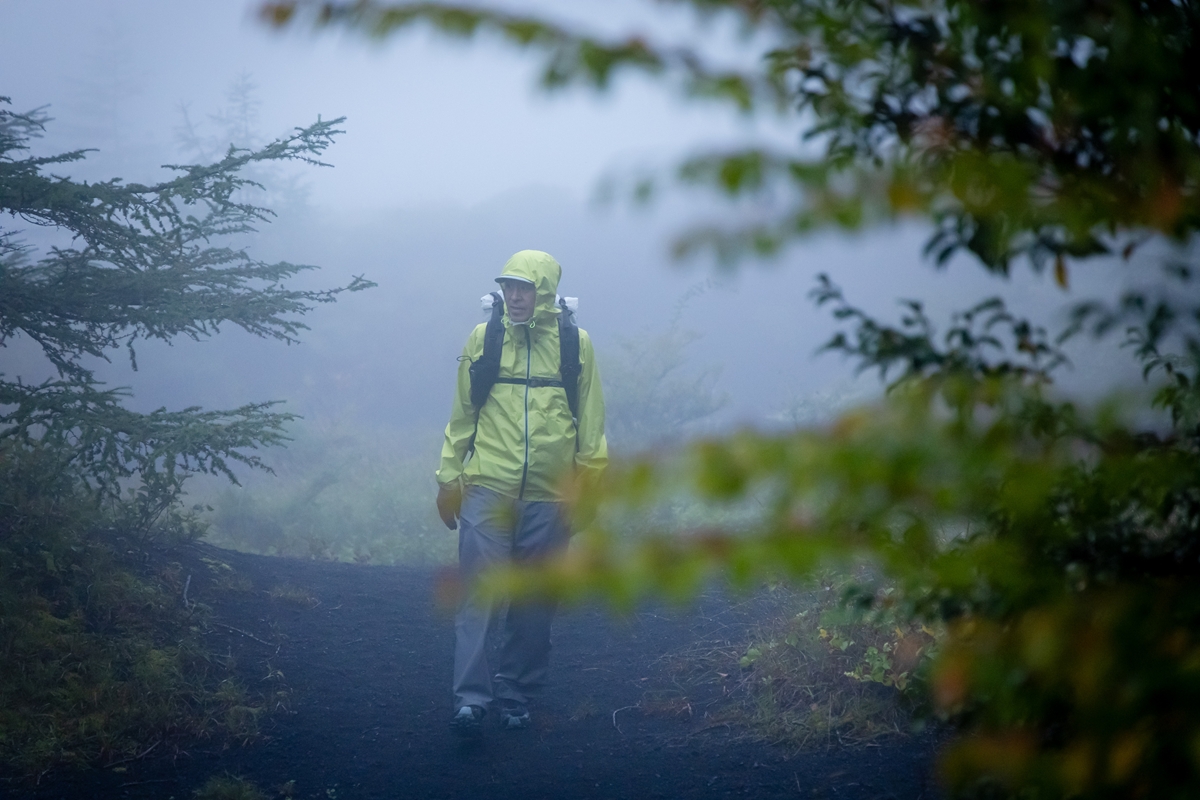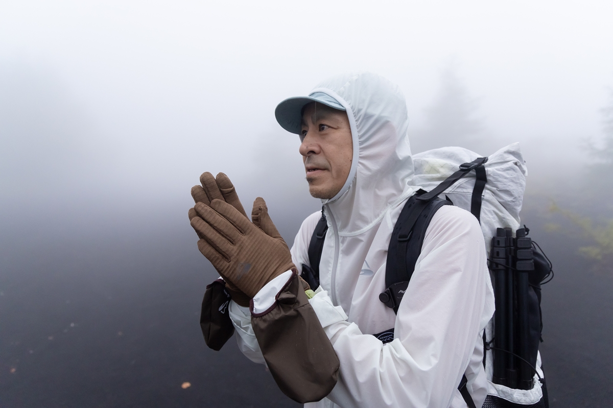 ファストトレイルグローブ2.0が活躍するのは、雲のなかに入って、しとしと雨に打たれたとき。さらに雲といっしょに吹いてくる風を防ぎたいときだ。