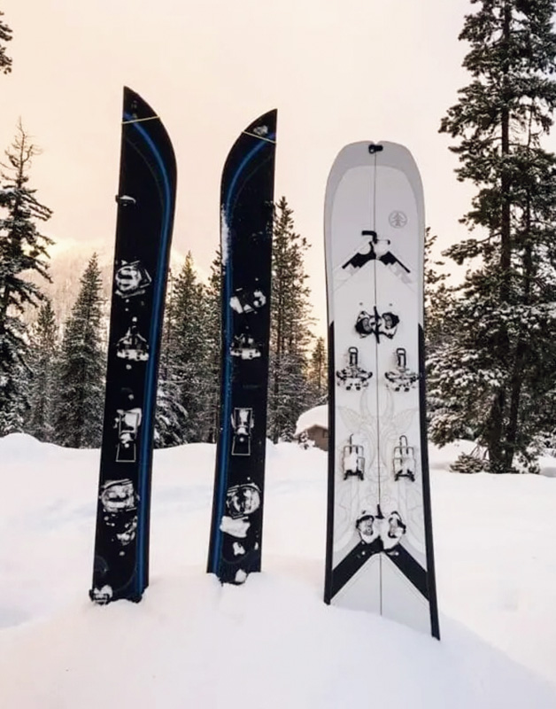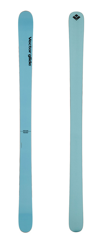 BC入門向けの最初のスキー板としては、しなやかなフレックスと軽さを備え、ゲレンデでもパウダーでも幅広く対応する、ツインロッカー形状のものがオススメだそう(写真のモデルはヴェクターグライド「MAKE BC」)。