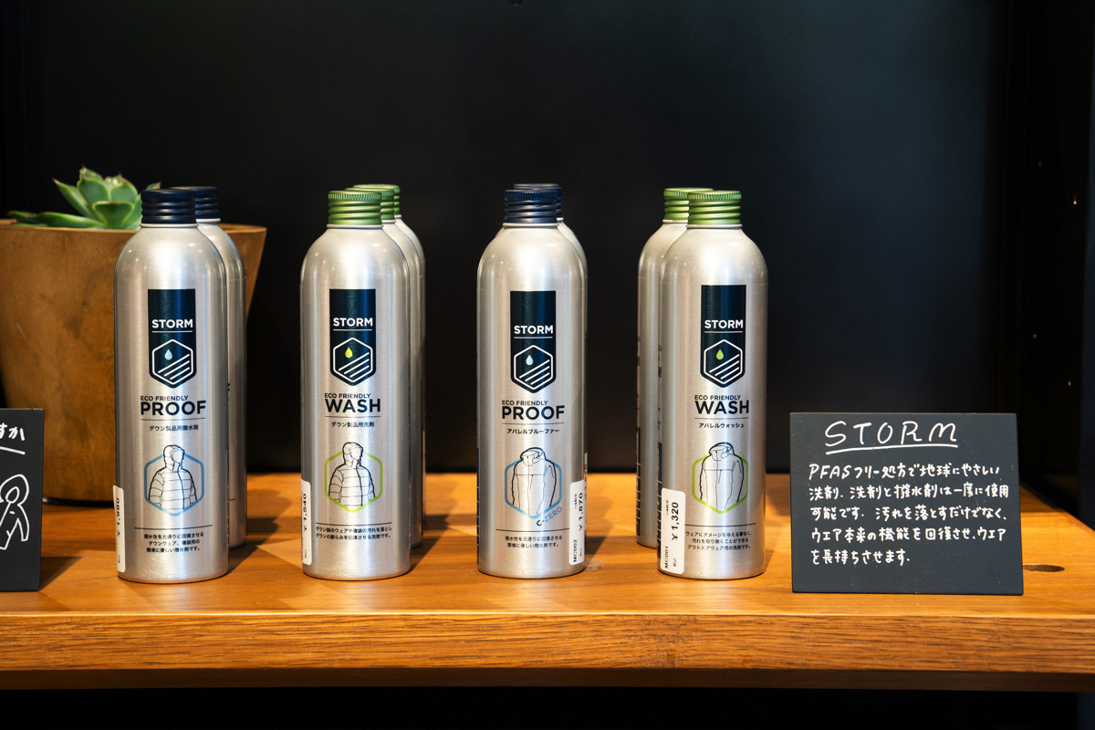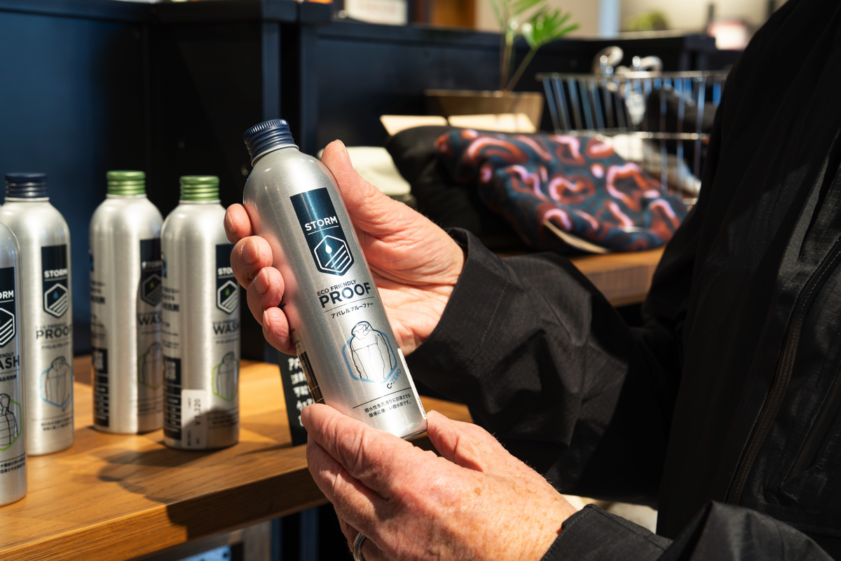 この日、東京駅からほど近い場所にある「パタゴニア東京・京橋」には、来日中の「STORM(ストーム)」創設者、ティム・ウィルソン氏の姿があった。「STORM」がつくるテクニカルウエア専用のケア用品は、その機能と使いやすさ、安定性が認められ、パタゴニアでも使用が推奨されている。歴史的にもアウトドアアクティビティが盛んなイギリスを拠点に、次世代のテクニカルウエアを「洗うこと」で支えるSTORM製品のについて、パタゴニアでテクニカル製品を担当する片桐氏を交え、ティム氏に詳しく話を聞いた。