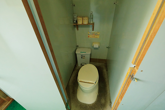 バイオトイレが本館別館ともに1階にあり、本館の個室はすべて洋式。洗面所の水は、300m下の一ノ俣側の沢からポンプアップしていて飲用も可能だ