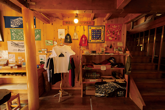 手ぬぐいやTシャツなどのオリジナル商品のほか、りんごジュースやみそパンなど松本銘菓まで手広く並ぶ