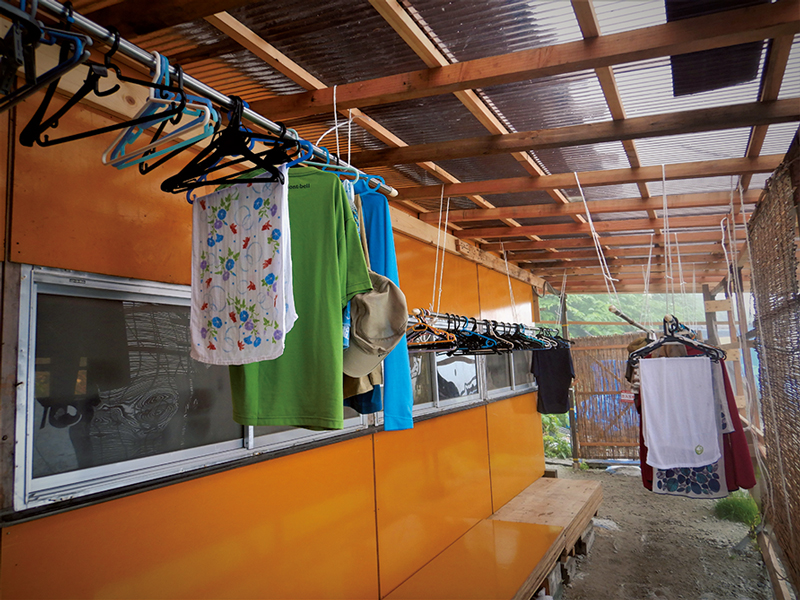 食堂館に面した屋外屋根下の部分は衣服を干すことができ、乾燥室の役割を担っている。雨天時以外でも入浴時に着用した水着やタオルを干すのに活躍している。