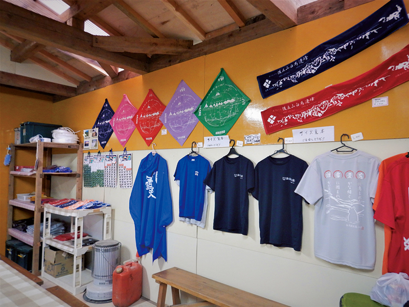 Tシャツや手ぬぐい、バンダナ、スポーツタオル、ポンチョまである。ビールは切らさないように荷揚げのたびにかなりの量を上げている。さすが温泉小屋。