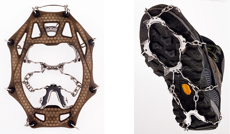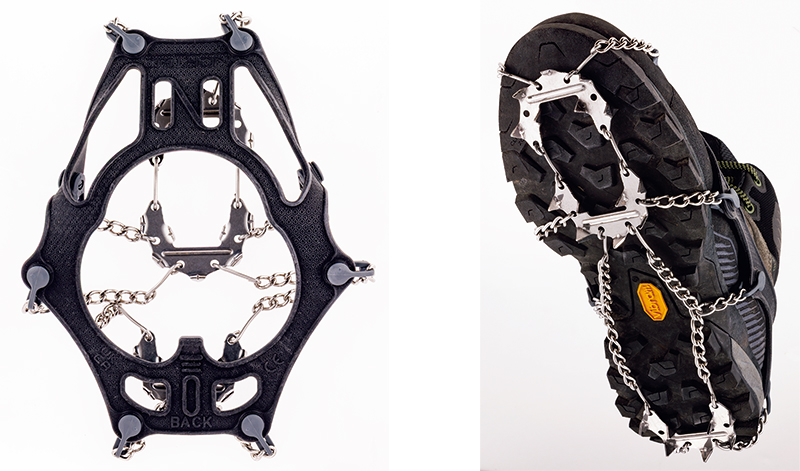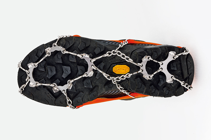 簡易的なクランポンとして一般的だった軽アイゼンに変わり、ここ10年くらいですっかり市民権を得た、短い爪がソールに広く張りめぐらされたチェーンスパイク。使いどころを選ぶ、このチェーンスパイクの実像を掘り下げていこう。