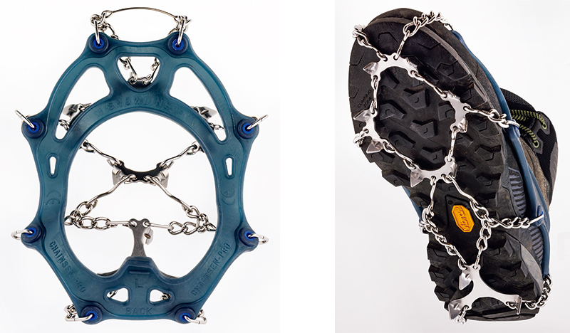 チェーンスパイクを生み出したパイオニアの定番モデル。2mm厚の爪、2mm径のチェーンなど剛性が高い作りで、ハードに使用しても破損しにくい