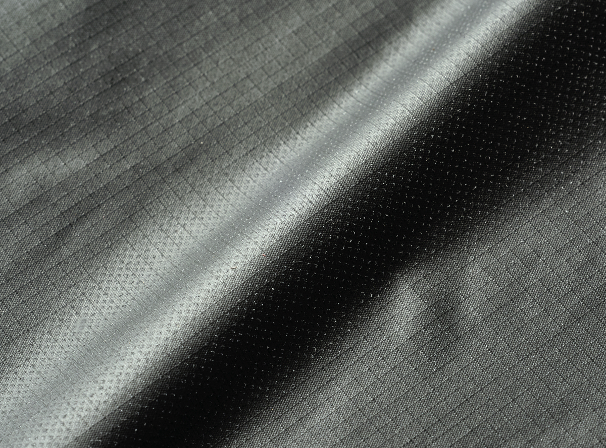 つぎに注目したいのが、2.5層構造の内側に施された、ワンランク上のドライ加工。一般的な2.5層素材は、裏面にドット状のプリントを施すなどの方法で肌離れを確保するが、防水膜に凹凸加工を施し、その上からさらに表面加工をプラスすることで、より3層に近いドライな着心地を実現。大量の汗をかくシーンでも、ベタつきや肌への張り付きを抑えて、快適に行動し続けることができる。